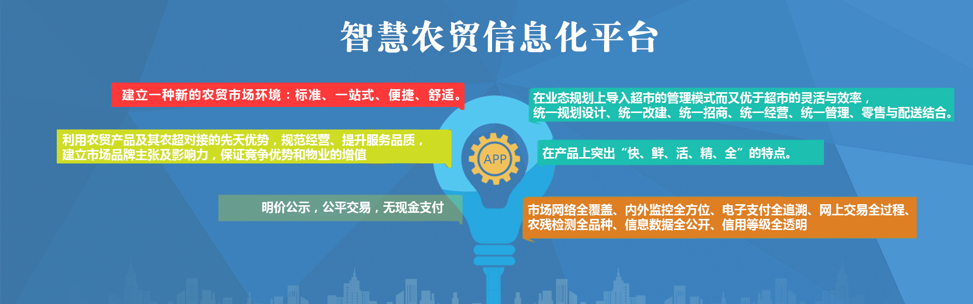 1、建立一种新的农贸市场环境:标准、一站式、便捷、舒适。